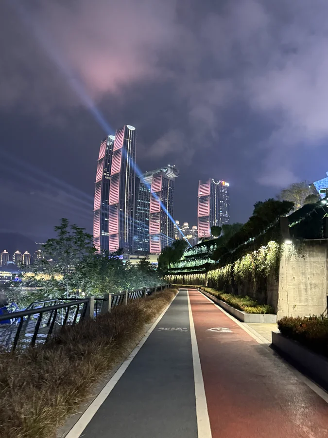 然后,我每到一个地方,都习惯了要跑个步。就沿着江边步道,从嘉陵江跑到了长江,步道修得很好,跑步的人也不少,只是不知道为什么在重庆跑步的大部分都是女生,这在其他城市也是很少见的。