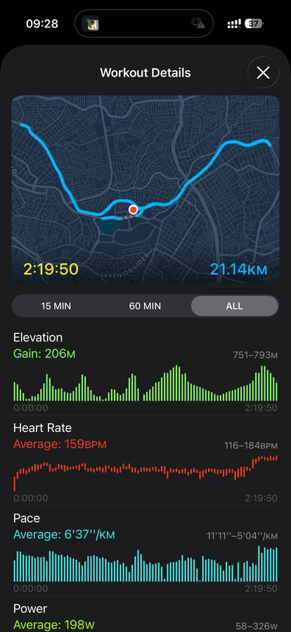 从上图可以看到,这个半马,累计爬升居然达到了200多米,算是我跑过的坡度最大的半马了吧。不过,反正本跑渣也不追求成绩,倒也关系不大。
