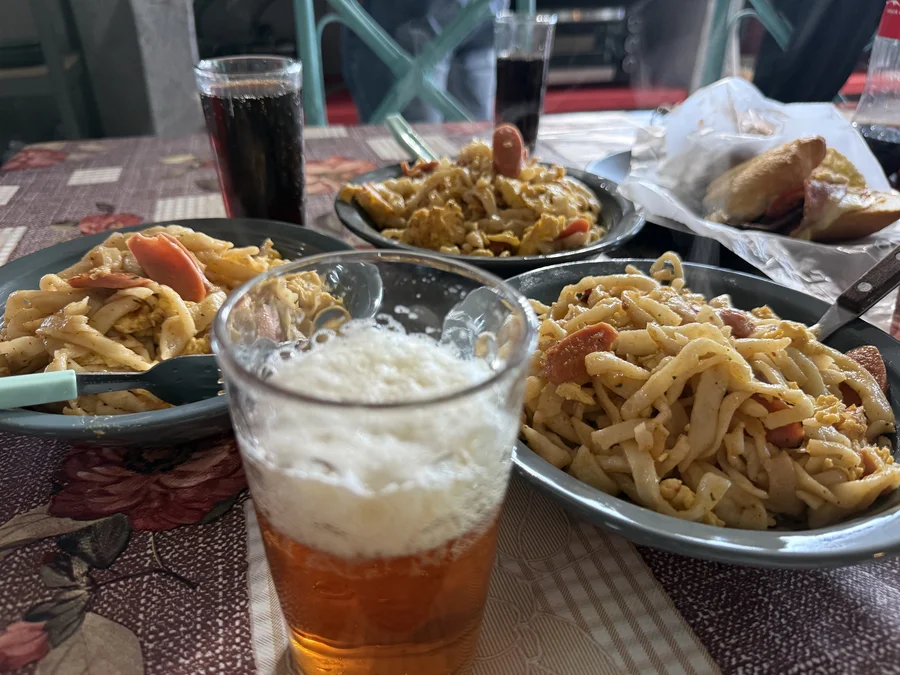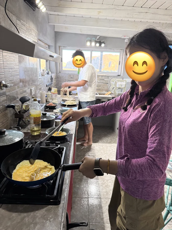 第一天只买到了面粉、火腿肠和鸡蛋,我们来了个鸡蛋炒面,味道真的超赞!