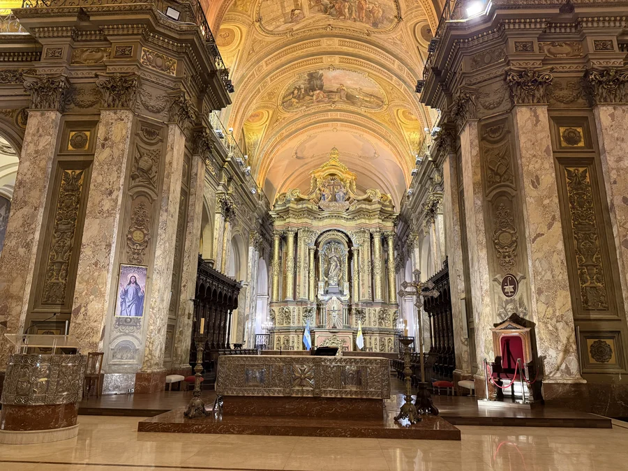 这座教堂是国家历史的一部分——这里安葬着民族英雄圣马丁。而在成为教皇之前,教宗方济各曾长期担任布宜诺斯艾利斯总主教,在这里主持弥撒、布道与祈祷。想到他曾从这座祭坛前走向梵蒂冈,空间仿佛又多了一层现实与时代的连接。