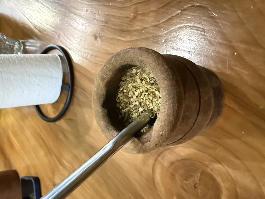 马黛茶,其实不是“茶”,而是另外一种植物饮品,来自南美本土植物 Ilex paraguariensis(巴拉圭冬青),在阿根廷,它几乎等同于“社交饮料”。在传统社交场景中,一杯 mate 会在一群人之间轮流传递,大家共用一根吸管。这是一种信任与共享的象征。很多人第一次喝会觉得苦,但习惯后会觉得非常提神。